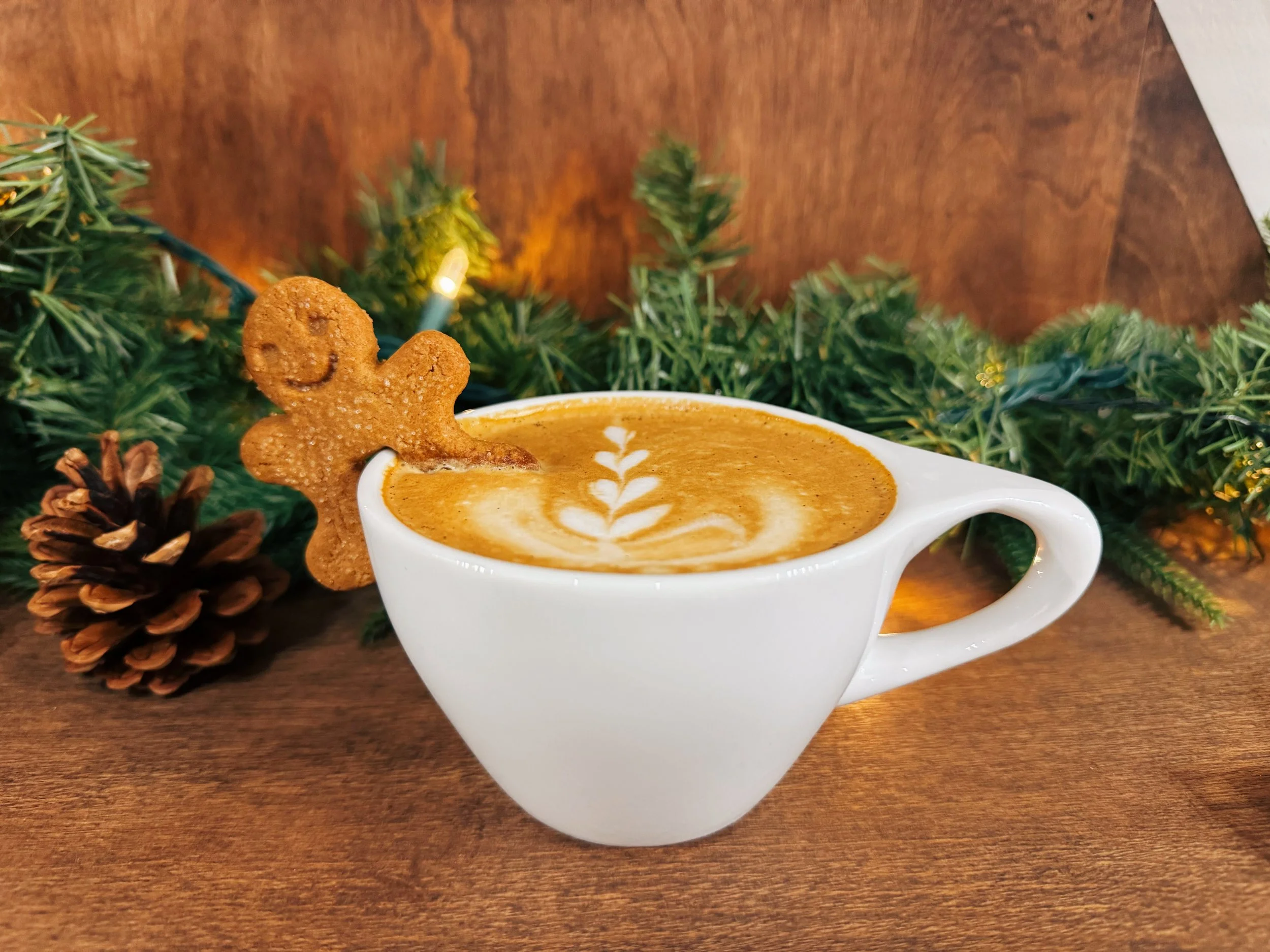 Housemade Spiced Gingerbread Syrup, Espresso, Milk, Cinnamon
